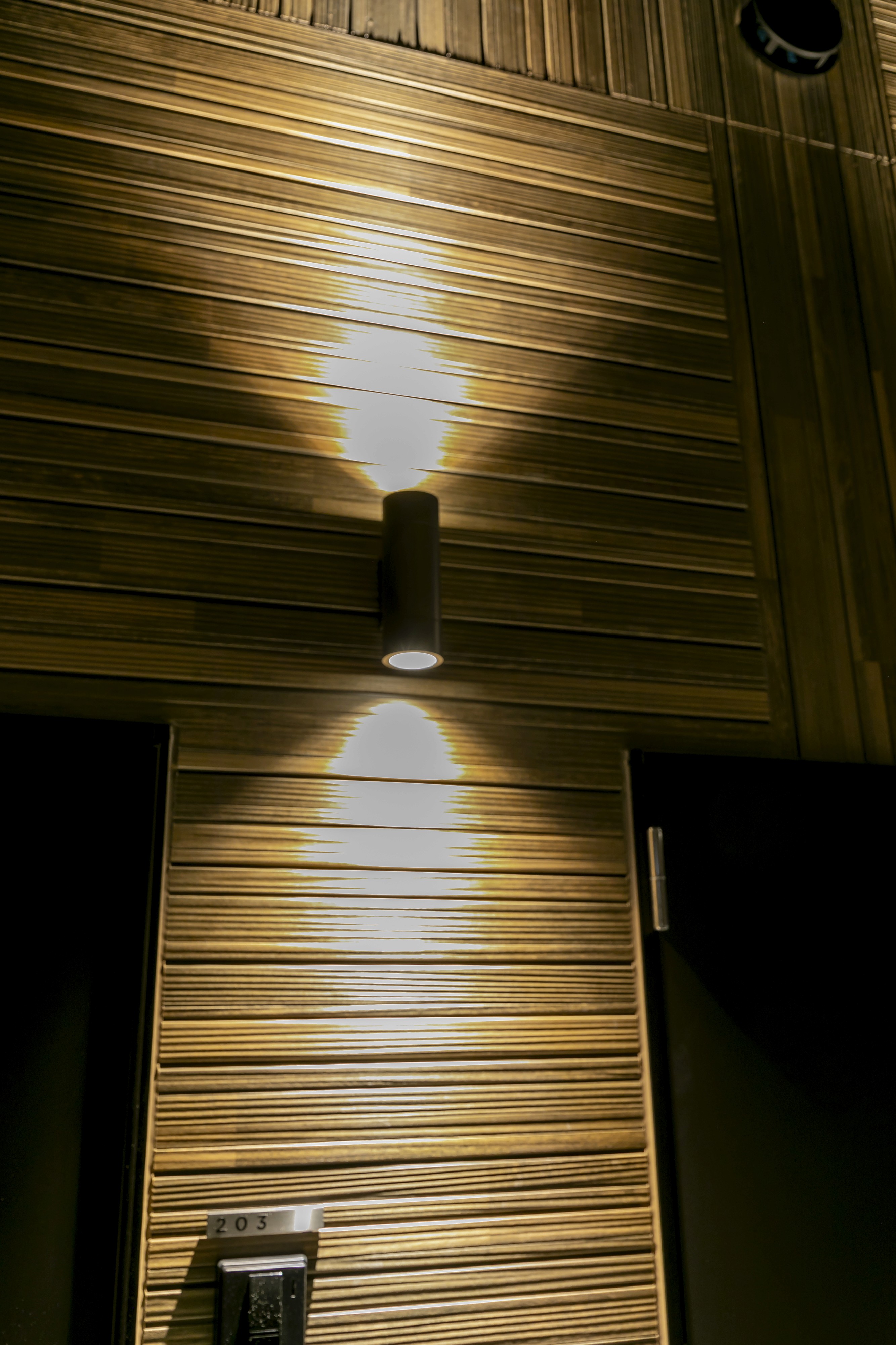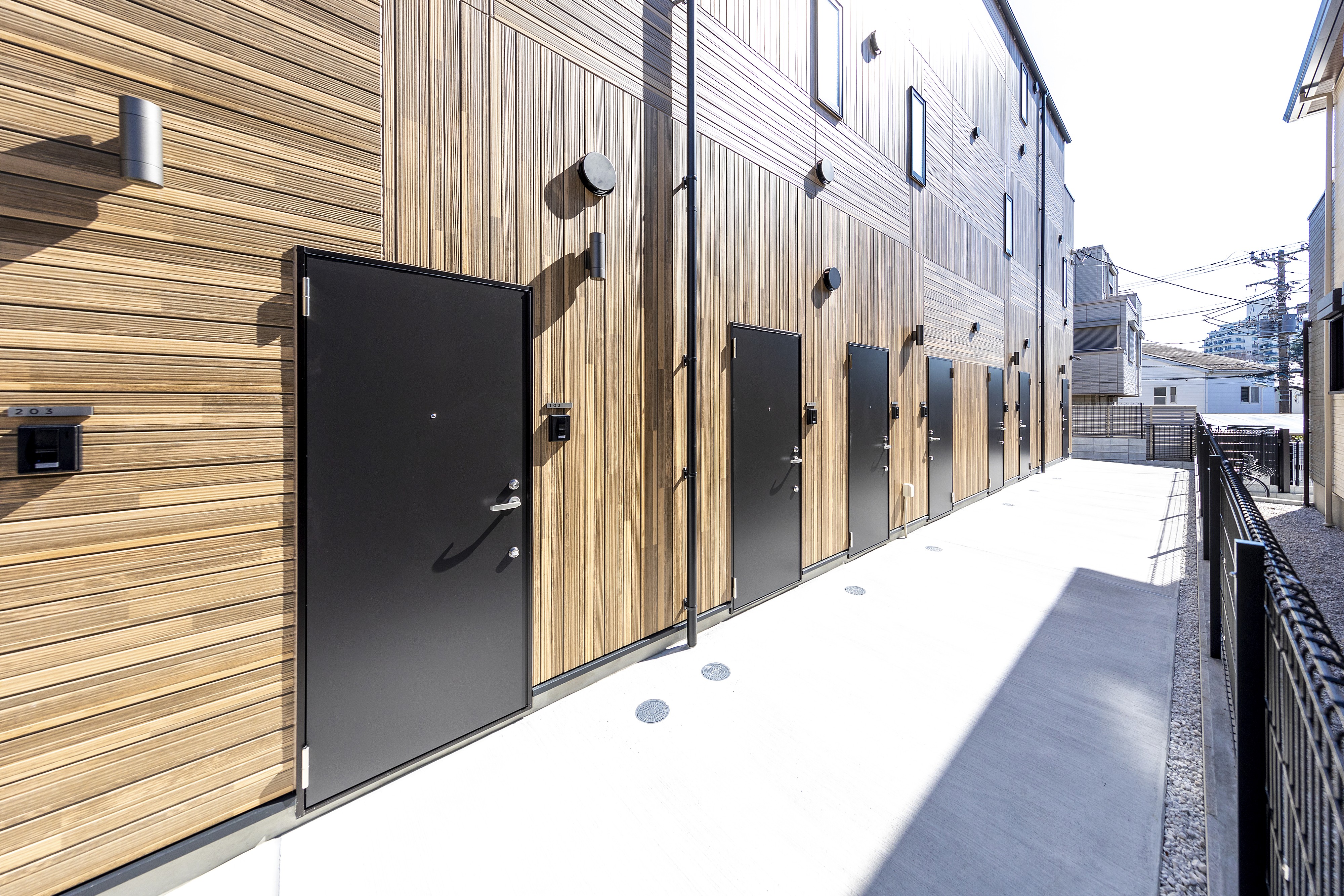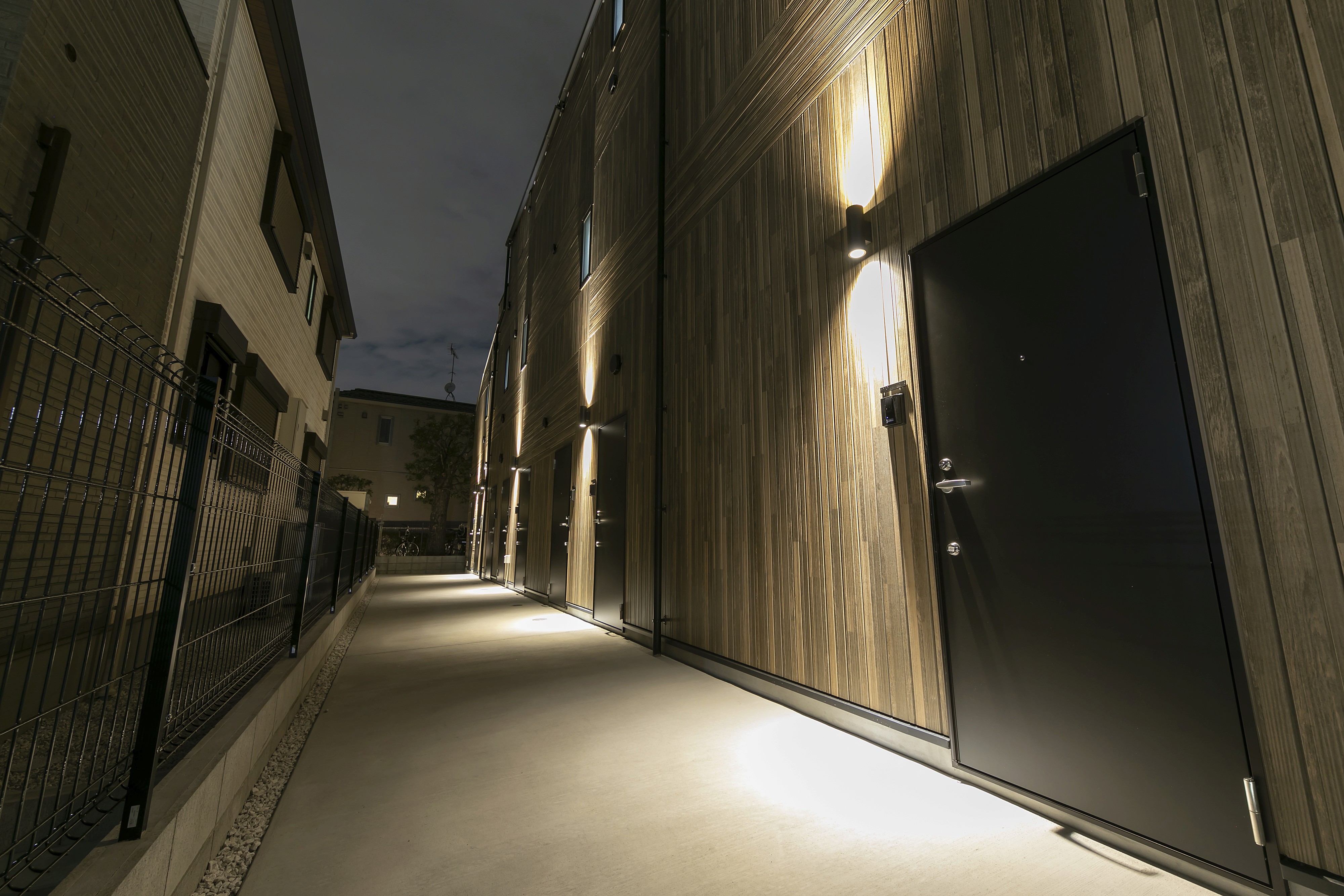 木の温もりとモダンデザインを融合させた外観、ブラックを基調とした洗練された内装、ホテルライクな水回り、そして計算された照明設計。