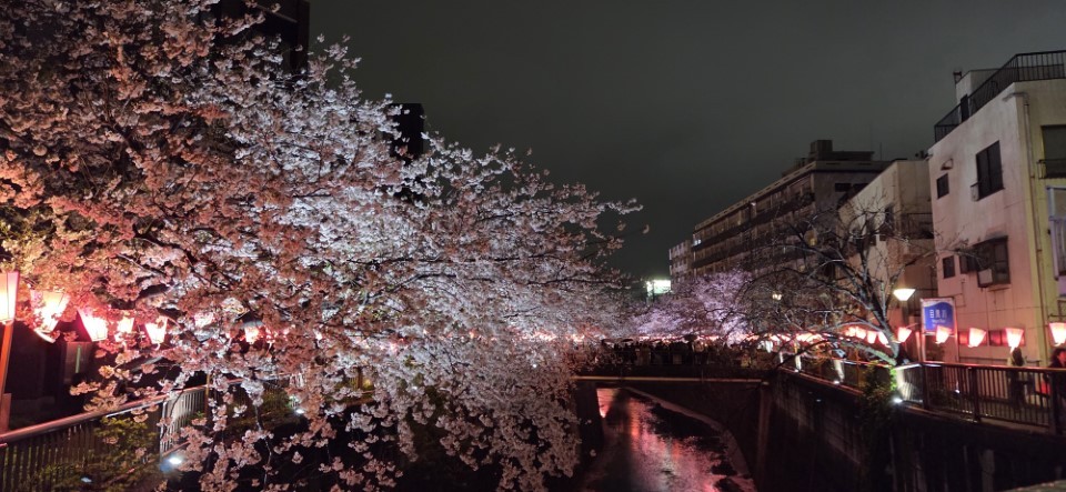 中目黒といえば、やはり目黒川の桜です。 先日、仕事帰りに夜の川沿いを歩いてきましたが、ライトアップされた夜桜は何度見ても息を呑む美しさでした。