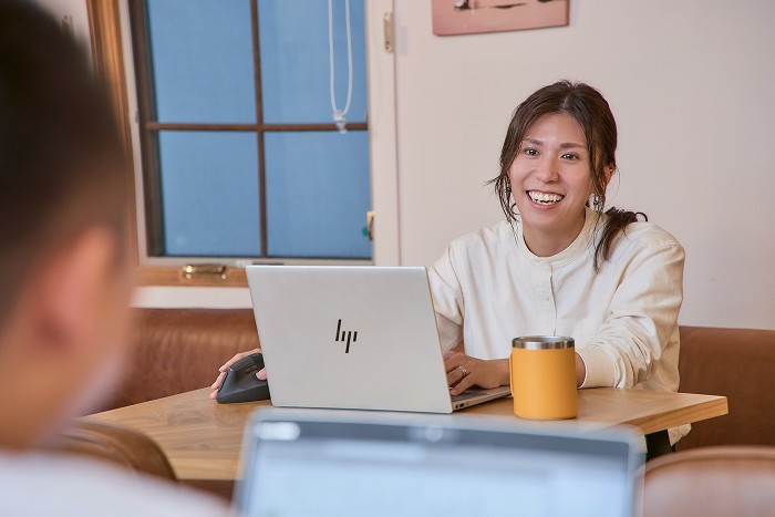 当社には定例的な会議はありません。業務報告や進捗共有はチャットベースで効率化します。その分、業務上の不明点や相談を気軽にいつでも聞けるチームワークを大切にしています。